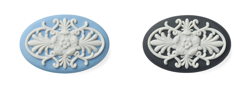 ジャスパーはこれまで、ジュエリー、コートのボタン、刀装具、ハイヒールの装飾など、さまざまなアイテムに用いられてきました。独特のマットな質感と柔らかな色合いは、身に着ける人や衣装を上品に引き立ててきた伝統があります。 新作「帯留め アラベスク」は、後述の「Wedgwood - KIMONO COLLECTION」をさらに美しく魅せるアクセサリーとして、着物のために特別に開発されました。マットな質感は和装との相性が非常によく、合わせる着物や帯紐によって多彩な表情を生み、上質な存在感を放ちます。